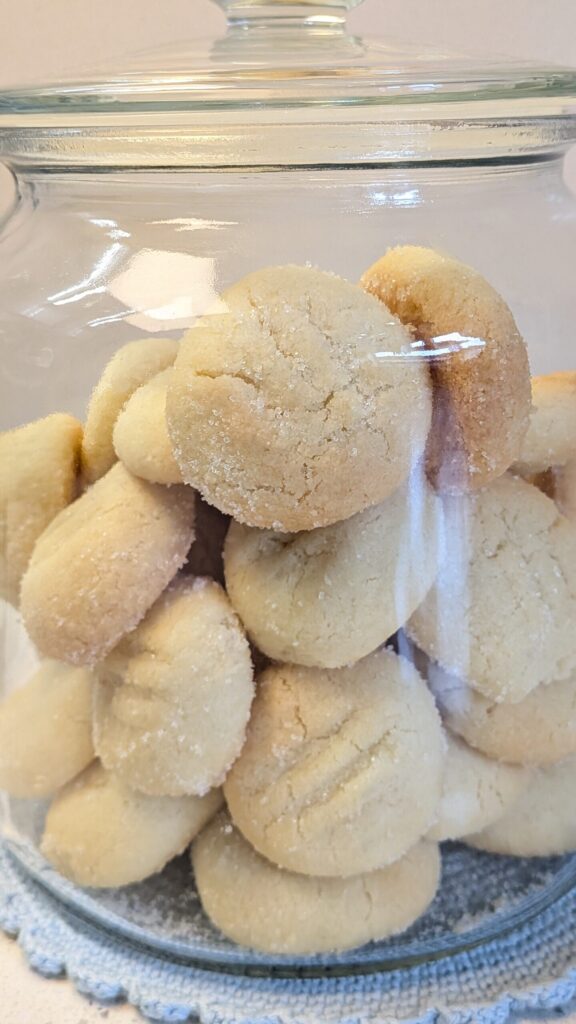 • Por fim, logo após retirar do forno, polvilhar os biscoitos com açúcar com cuidado para não se queimar e deixar arrefecer por completo.